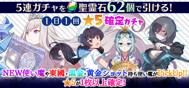 【一部NEW使い魔や東國・黒金・黄金ショット持ち使い魔などがPickUP】1日1回★5確定ガチャ