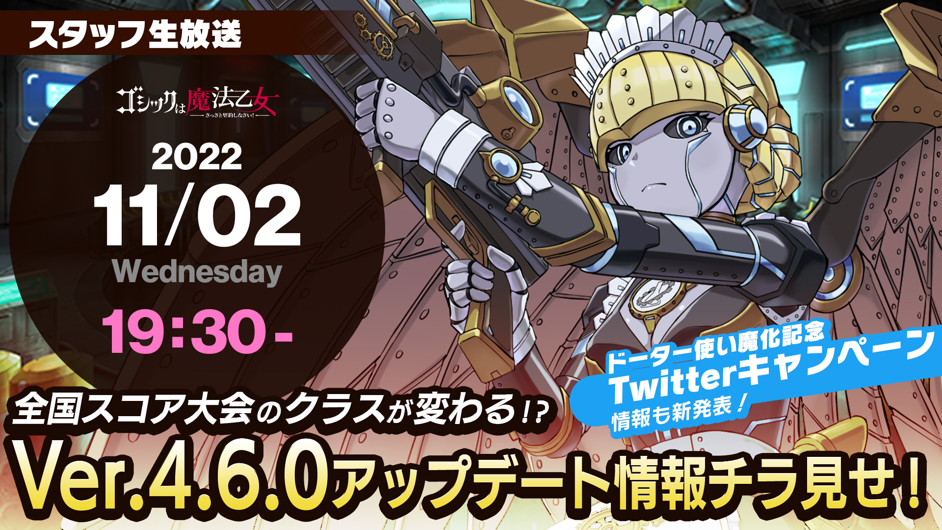 [予告]11/2(水)【スタッフ生放送】Ver4.6.0アップデート情報チラ見せ!!