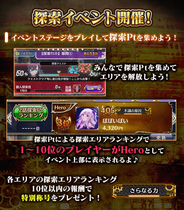 | 解放条件 | 全員で1話の探索Ptを5,000,000Pt集めよう |