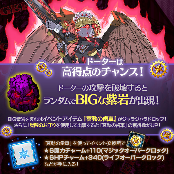 | 入場キー 「冥動の歯車」がジャラジャラドロップする【暴走】ドーター出現!ステージに挑戦できます。 | 最大60個 |