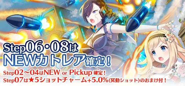 - ステップアップガチャは、Step数によってガチャの提供内容が変化します。 Step数の上昇により必ずしも提供内容がより良い内容に変化することを保証するわけではありません。
