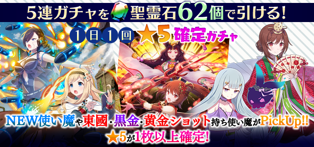 【一部NEW使い魔や東國・黒金・黄金ショット持ち使い魔などがPickUP】1日1回★5確定ガチャ