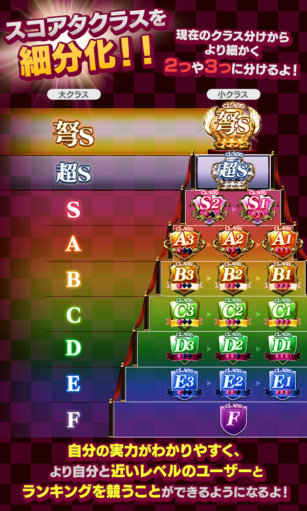 11/15(火)のメンテナンス後より、全国スコア大会のクラスを、2つ~3つの小クラスに細分化しました。