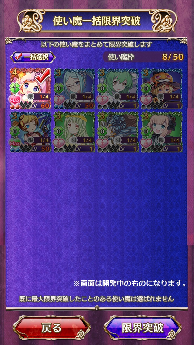 限界突破可能な使い魔を複数同時に限界突破できる機能を追加しました。