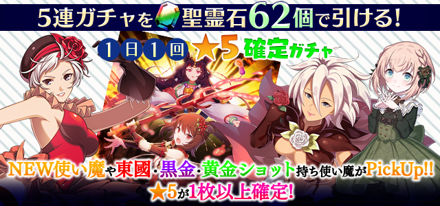 【一部NEW使い魔や東國・黒金・黄金ショット持ち使い魔などがPickUP】1日1回★5確定ガチャ