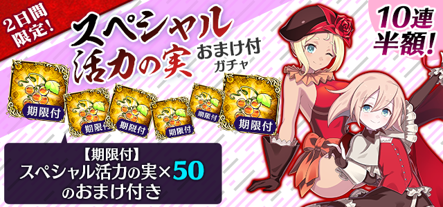 【2日間限定&10連半額!】スペシャル活力の実おまけ付ガチャ