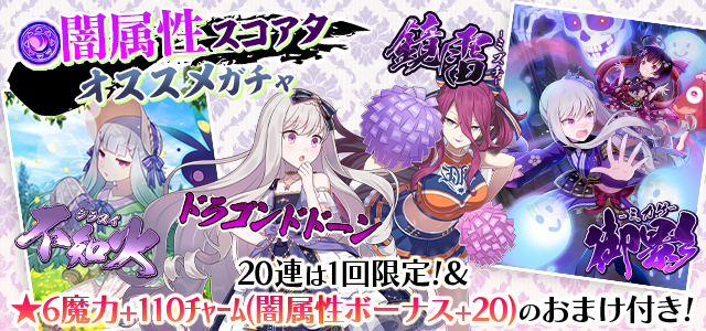 【★6魔力+110チャーム(闇属性ボーナス+20)のおまけ付き!】闇属性スコアタオススメガチャ