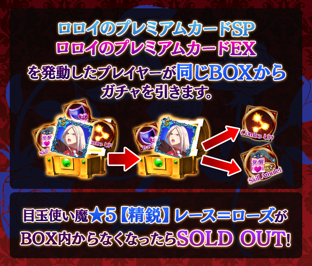 ☆★VIP用★☆【『聖霊石×5490』や鋳薔薇コラボ使い魔が当たるチャンス!】レース=ローズ鋳薔薇コラボVIPシェアBOXガチャ