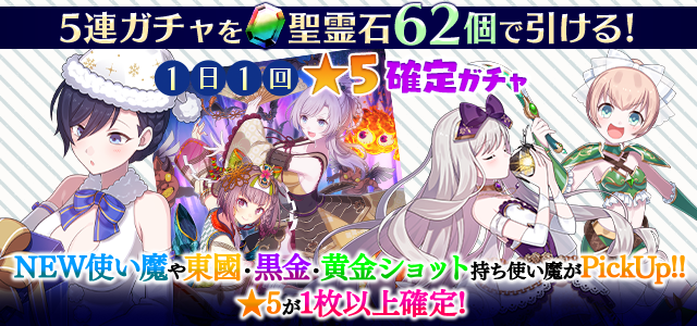 【一部NEW使い魔や東國・黒金・黄金ショット持ち使い魔などがPickUP】1日1回★5確定ガチャ