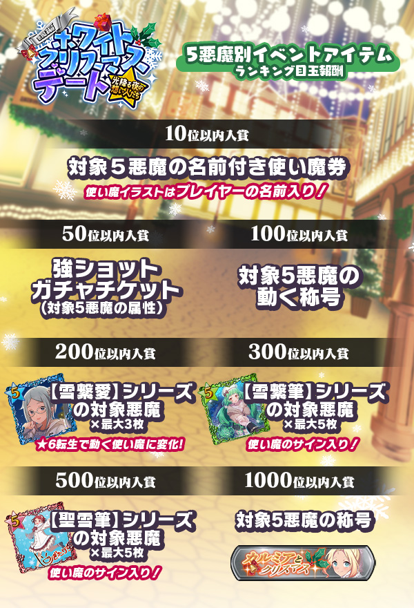 | 復刻クリスマス悪魔交換券 過去のクリスマステーマの悪魔と交換できる! | 最大17枚 | |