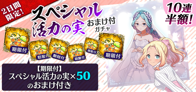 【2日間限定&10連半額!】スペシャル活力の実おまけ付ガチャ