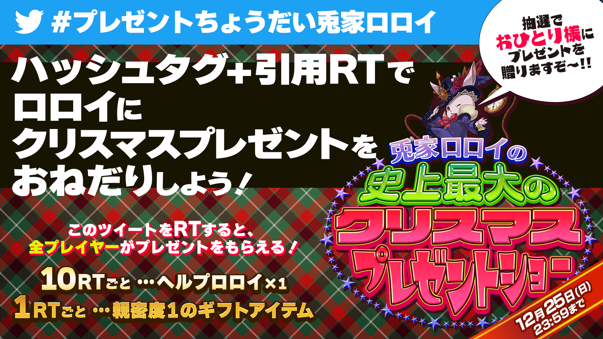 さらに、対象のツイートをRTすると全プレイヤーにヘルプロロイや親密度ギフトをプレゼント!