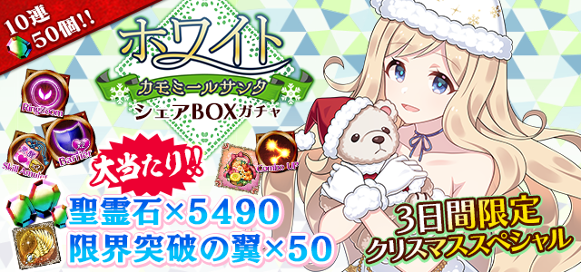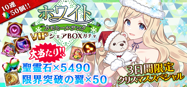 ☆★VIP用★☆【クリスマススペシャル!『限界突破の翼×50』が当たるチャンス!】ホワイトカモミールサンタVIPシェアBOXガチャ