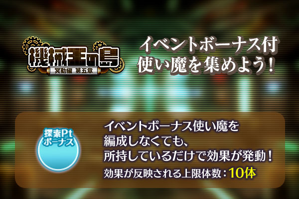 - ボーナスが反映される所持使い魔は、預り所・プレゼントにいる使い魔以外で、使い魔一覧で表示される使い魔が対象となります。