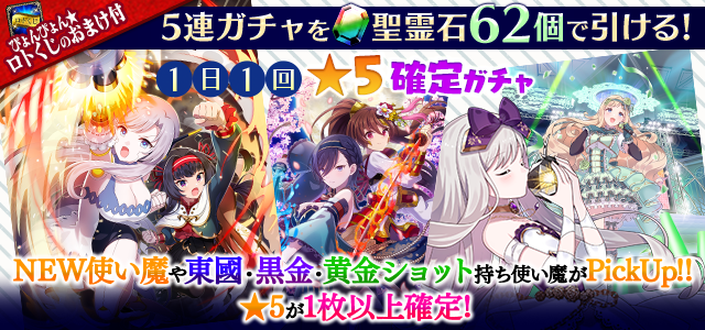 【一部NEW使い魔や東國・黒金・黄金ショット持ち使い魔などがPickUP】1日1回★5確定ガチャ