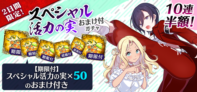 【2日間限定&10連半額!】スペシャル活力の実おまけ付ガチャ