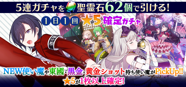 【一部NEW使い魔や東國・黒金・黄金ショット持ち使い魔などがPickUP】1日1回★5確定ガチャ