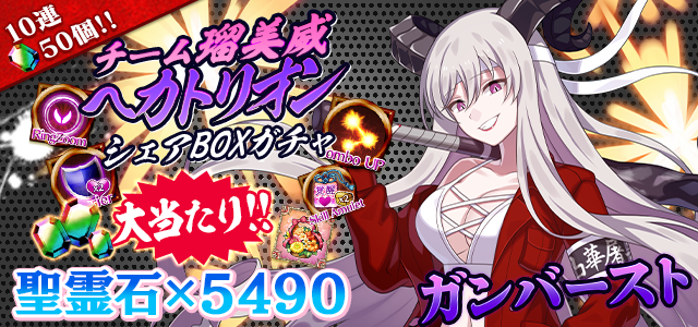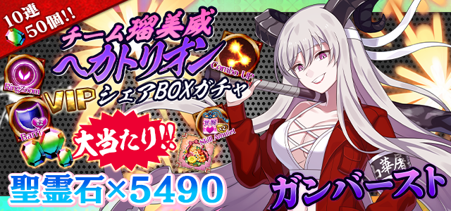 【VIPシェアBOXガチャも登場!『聖霊石×5490』が当たるチャンス!】チーム瑠美威へカトリオンシェアBOXガチャ