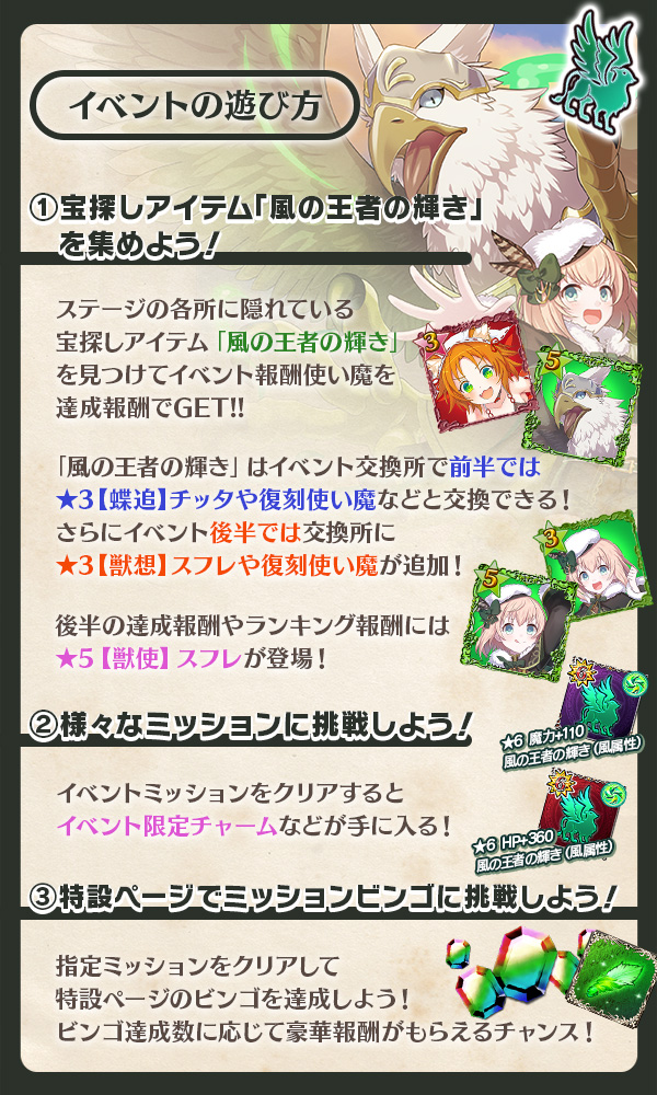 | 終了日時 | 2023/2/5(日) 23:59 | 解放条件 | 風の王者の輝きを5000個獲得 |