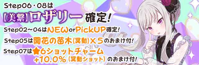 - ステップアップガチャは、Step数によってガチャの提供内容が変化します。 Step数の上昇により必ずしも提供内容がより良い内容に変化することを保証するわけではありません。