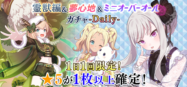 【★5が1枚以上確定&1日1回限定】霊獣編&夢心地&ミニオーバーオールガチャ-Daily-