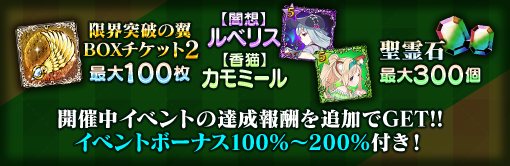 | 限界突破の翼 BOXチケット2 | 最大30個 | 最大60個 | 最大100個 |