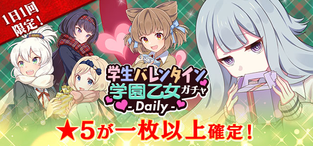【★5が1枚以上確定&1日1回限定】学生バレンタイン学園乙女ガチャ-Daily-