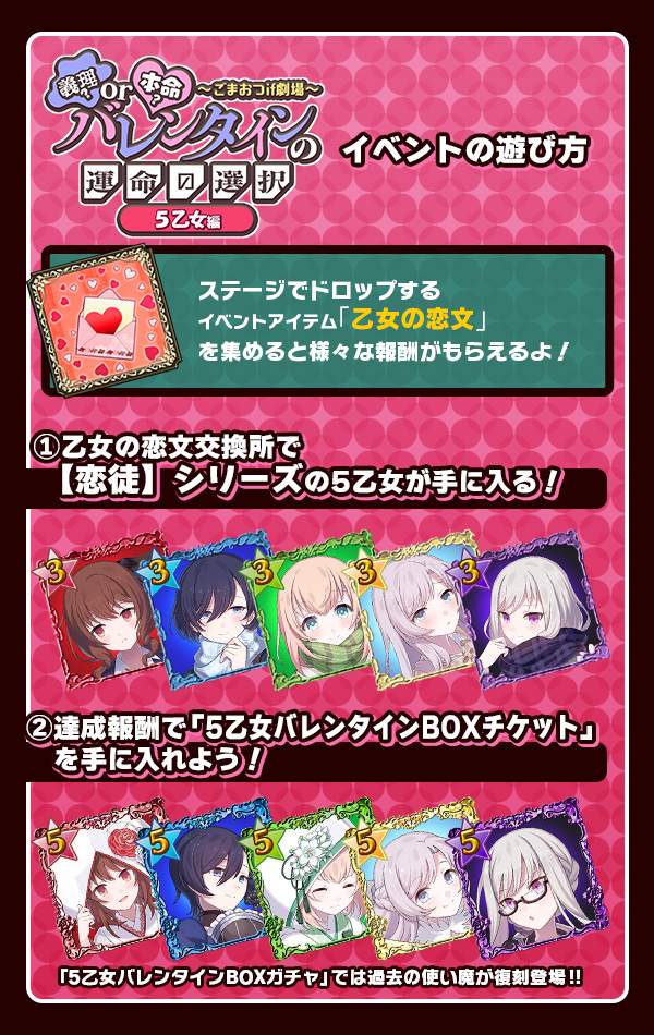 バレンタインイベント【ごまおつif劇場:義理?or 本命?バレンタインの運命の選択 5乙女編】開催!!