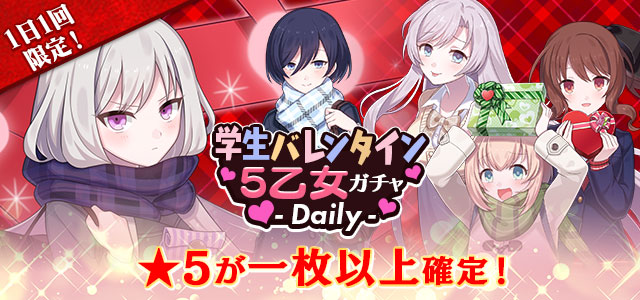 【★5が1枚以上確定&1日1回限定】学生バレンタイン5乙女ガチャ-Daily-