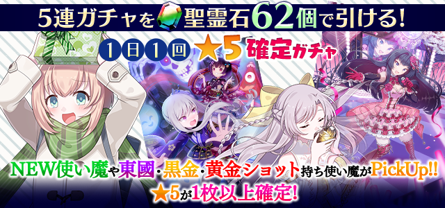 【一部NEW使い魔や東國・黒金・黄金ショット持ち使い魔などがPickUP】1日1回★5確定ガチャ