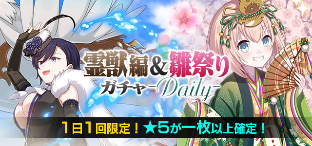 【★5が1枚以上確定&1日1回限定】霊獣編&雛祭りガチャ-Daily-