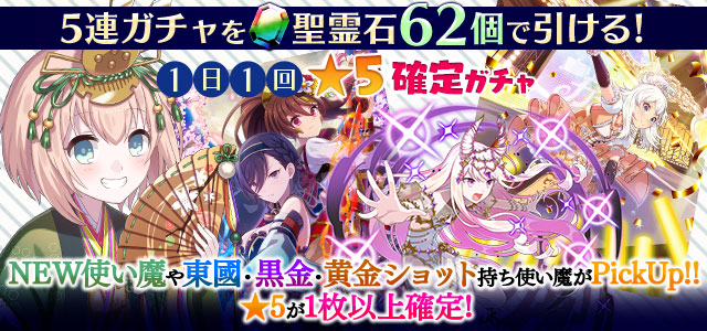 【一部NEW使い魔や東國・黒金・黄金ショット持ち使い魔などがPickUP】1日1回★5確定ガチャ