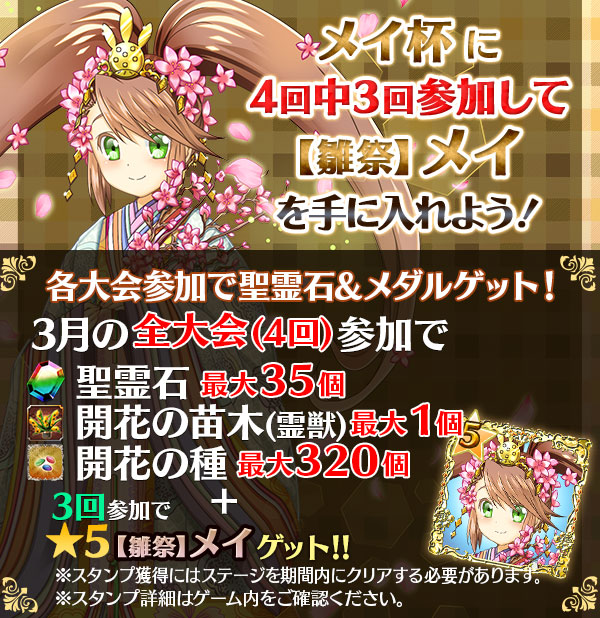 【毎週土曜!3回参加で★5【雛祭】メイGET】3月全国スコア大会!!