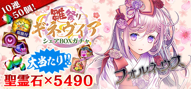 【『聖霊石×5490』や【雛祭】シリーズの使い魔が当たるチャンス!】雛祭りギネヴィアシェアBOXガチャ