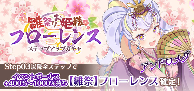 【Step03以降全ステップでイベントボーナス+400%~1000%持ち【雛祭】フローレンス確定!】雛祭りお姫様フローレンスステップアップガチャ