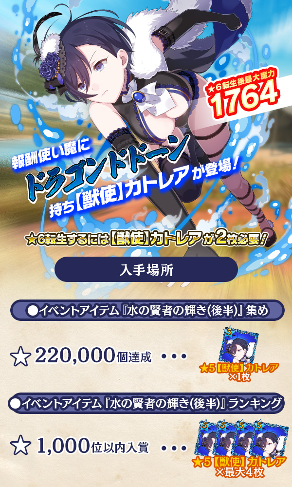 - ★3【獣想】カトレアの親密度ランクMAX時のラブマックス時間は★5使い魔と同等となります。