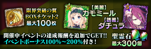 | 限界突破の翼 BOXチケット2 | 最大30個 | 最大60個 | 最大100個 |