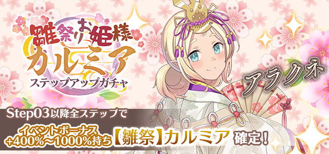 【Step03以降全ステップでイベントボーナス+400%~1000%持ち【雛祭】カルミア確定!】雛祭りお姫様カルミアステップアップガチャ