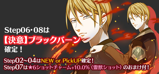 - ステップアップガチャは、Step数によってガチャの提供内容が変化します。 Step数の上昇により必ずしも提供内容がより良い内容に変化することを保証するわけではありません。