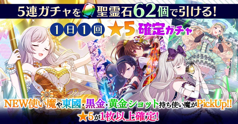 【一部NEW使い魔や東國・黒金・黄金ショット持ち使い魔などがPickUP】1日1回★5確定ガチャ