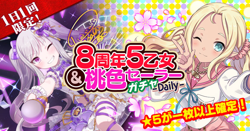 【★5が1枚以上確定&1日1回限定】8周年5乙女&桃色セーラーガチャ-Daily-