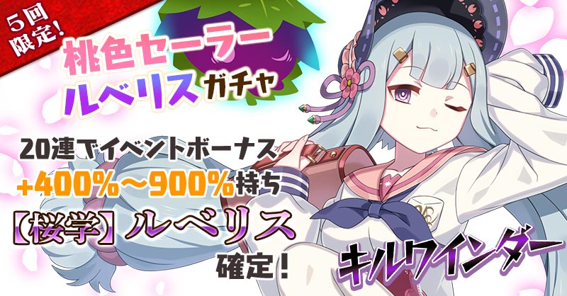 【イベントボーナス+400%~900%持ち【桜学】ルベリスが20連で確定!】桃色セーラールベリスガチャ