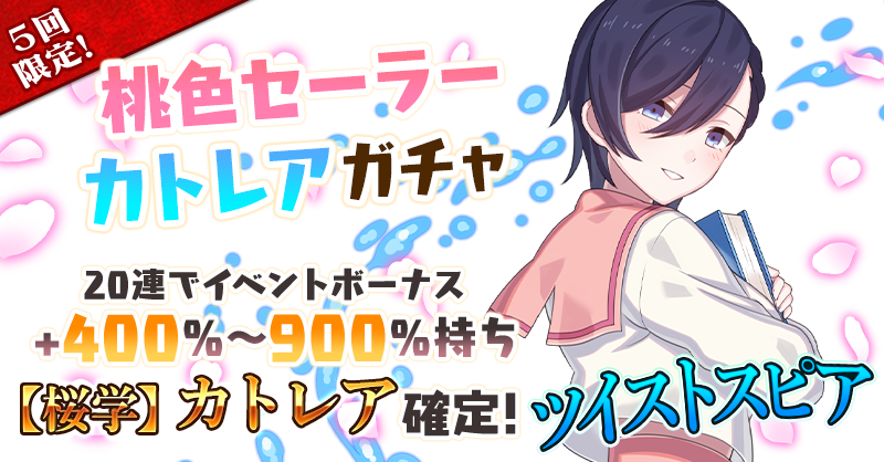 【イベントボーナス+400%~900%持ち【桜学】カトレアが20連で確定!】桃色セーラーカトレアガチャ