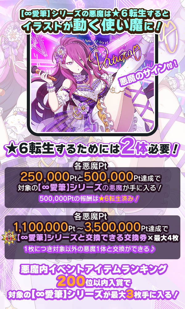 - さらに、各悪魔Pt達成報酬の「動く使い魔交換券(悪魔)A~E」は★6転生済みで交換可能!