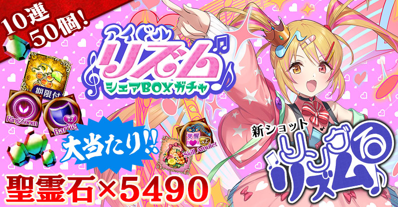 [予告]【『聖霊石×5490』や新ショット持ちリズムが当たるチャンス!】アイドルリズムシェアBOXガチャ