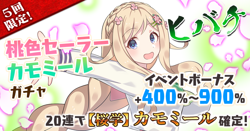 【イベントボーナス+400%~900%持ち【桜学】カモミールが20連で確定!】桃色セーラーカモミールガチャ