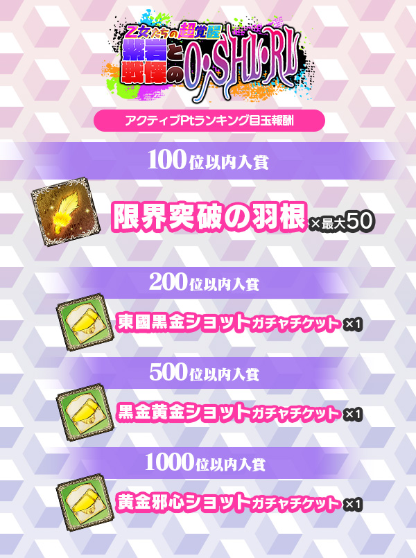 - ・アクティブPt達成報酬×最大1枚