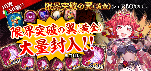 【『限界突破の翼(黄金)×50』が当たるチャンス!】限界突破の翼(黄金)シェアBOXガチャ