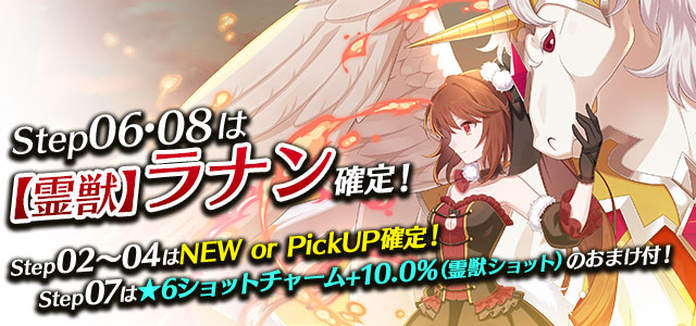 - ステップアップガチャは、Step数によってガチャの提供内容が変化します。 Step数の上昇により必ずしも提供内容がより良い内容に変化することを保証するわけではありません。