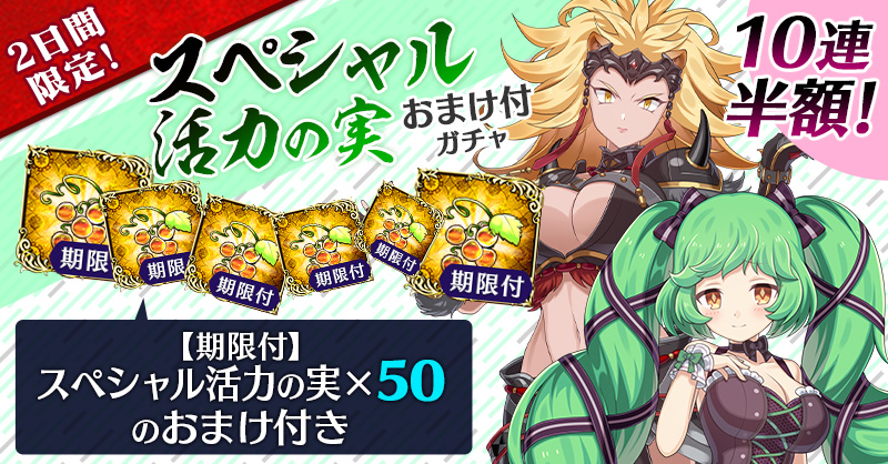 【2日間限定&10連半額!】スペシャル活力の実おまけ付ガチャ